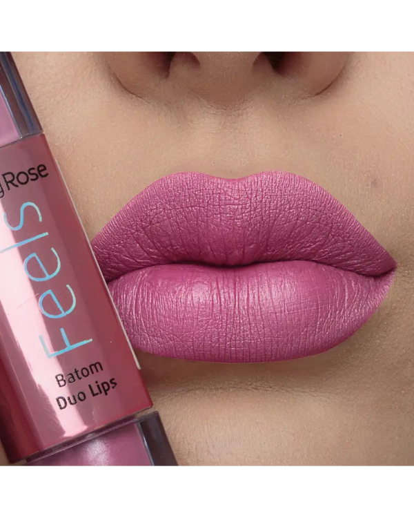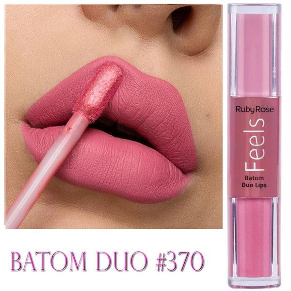 El Labial de Ruby Rose Feels dúo tono 370 es una labial mitad matte y la otra mitad es shimmer con micropartículas de glitter. Son de larga duración, no transfieren una vez que secan, son super pigmentados! Tenes dos labiales en 1 !