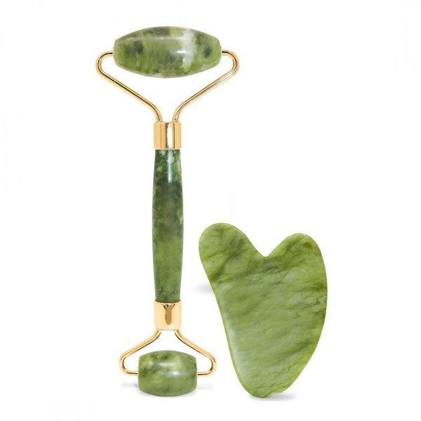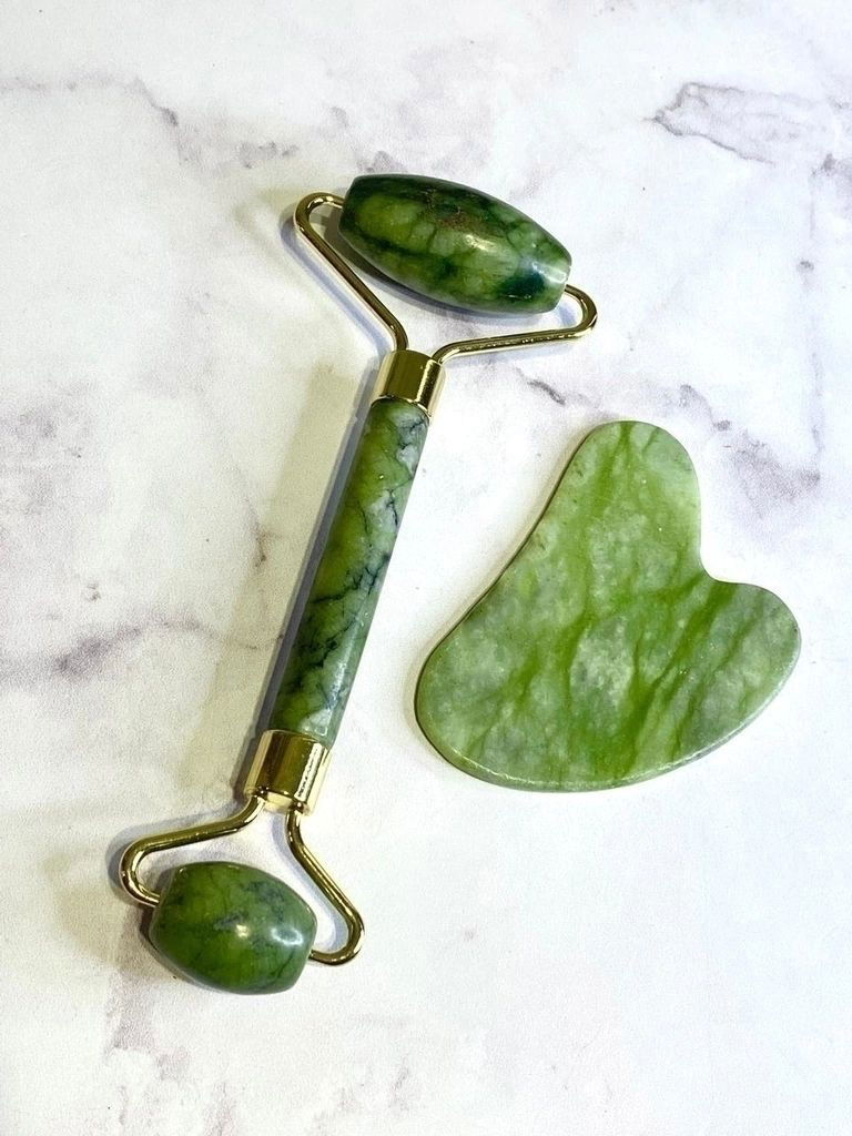 Set de Masajeador facial + Gua sha jade