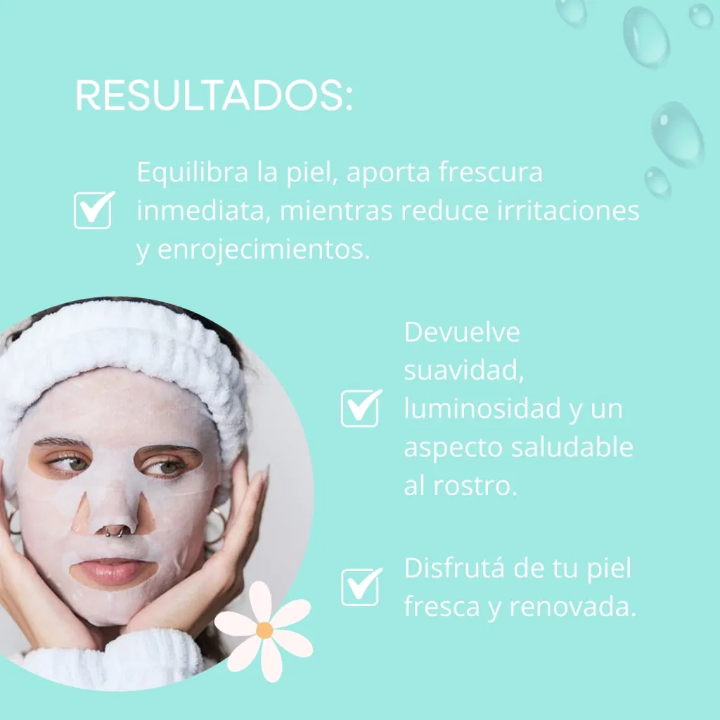 Hidratá, calmá y revitalizá tu piel con esta mascarilla facial enriquecida con aloe vera, pomelo y extracto de cica. Su fórmula está diseñada para equilibrar la piel, aportando una sensación de frescura inmediata mientras reduce irritaciones y enrojecimientos. Perfecta para devolverle al rostro suavidad, luminosidad y un aspecto saludable, es ideal para pieles cansadas o estresadas.
