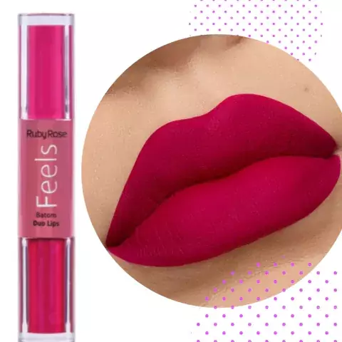 El Labial de Ruby Rose Feels dúo es una labial mitad matte y la otra mitad es shimmer con micropartículas de glitter. Son de larga duración, no transfieren una vez que secan, son super pigmentados! Tenes dos labiales en 1 !