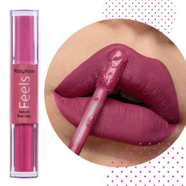El Labial de Ruby Rose Feels dúo tono 363 es una labial mitad matte y la otra mitad es shimmer con micropartículas de glitter. Son de larga duración, no transfieren una vez que secan, son super pigmentados! Tenes dos labiales en 1 !