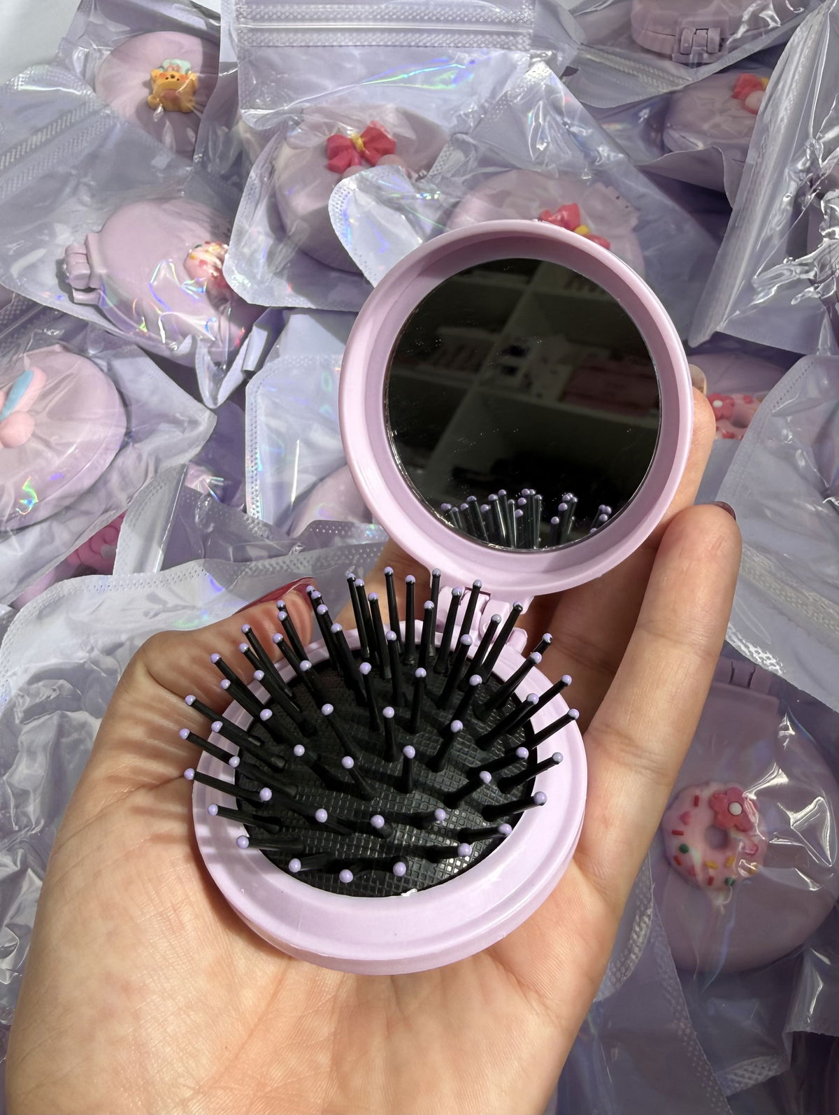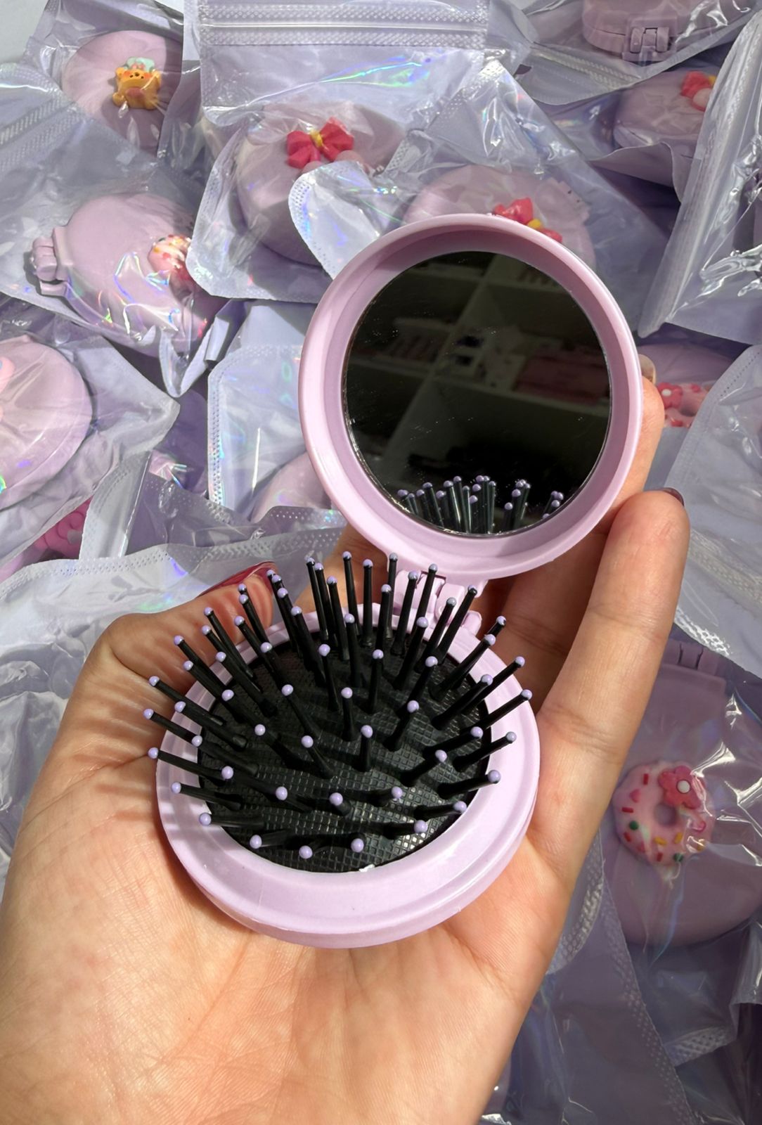 Cepillo de cartera con espejo COLOR LILA
