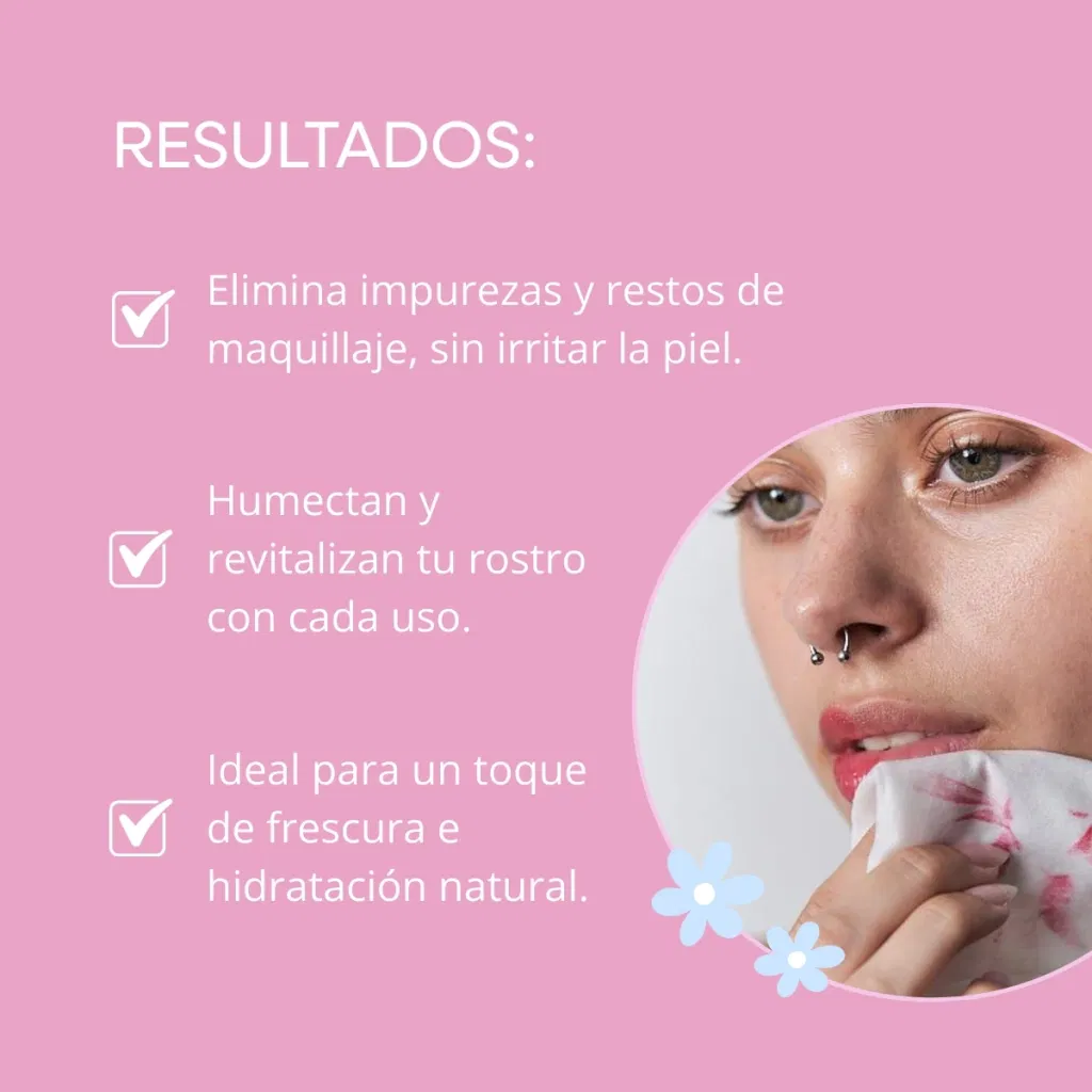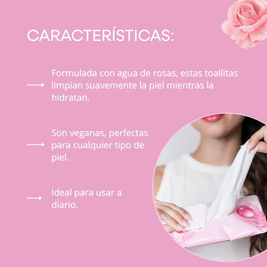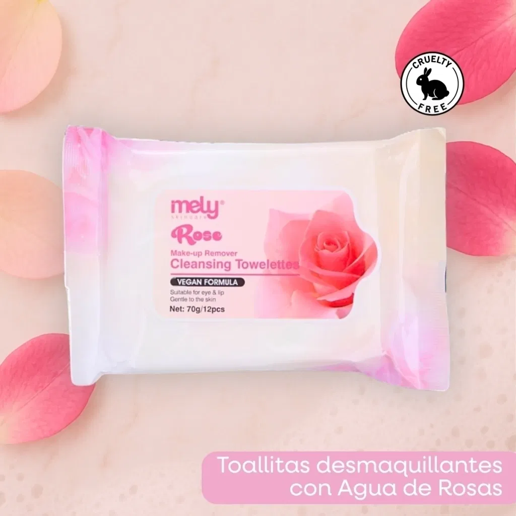 Refrescá y cuidá tu piel con lasToallitas Húmedas Agua de Rosas de MELY, el aliado ideal para mantener tu rostro limpio y fresco en cualquier momento del día. Su fórmula vegana está enriquecida con extracto de agua de rosas, conocido por sus propiedades calmantes, hidratantes y tonificantes. Estas toallitas limpian eficazmente la piel, eliminando impurezas y restos de maquillaje, mientras hidratan y revitalizan tu rostro con cada uso.