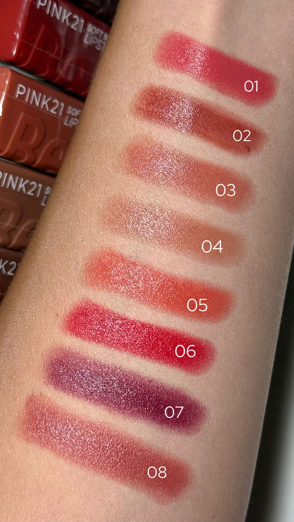 Descubre la elegancia del color con los labiales Soft Matte Lipstick de la marca PINK 21, una línea diseñada para realzar la belleza natural de tus labios con tonos sofisticados y un acabado suave y aterciopelado. Cada labial viene en un empaque moderno con diseño en relieve, que no solo es visualmente atractivo, sino también práctico y fácil de identificar.