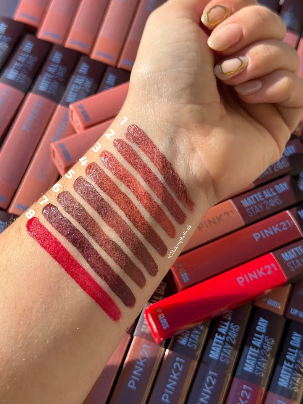 La colección lleva el nombre Matte All Day Stay 24HS, lo cual indica que están formulados para tener un acabado mate de larga duración, prometiendo permanecer en los labios hasta 24 horas sin perder color.