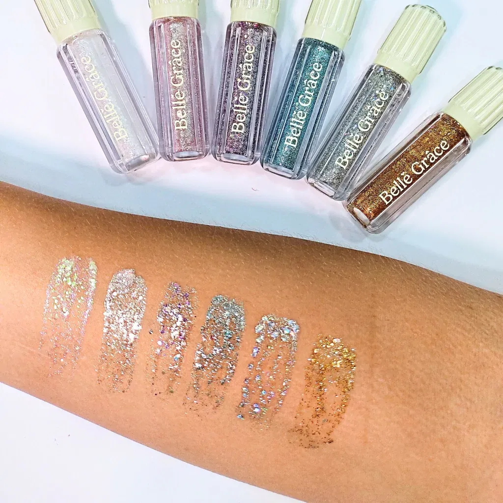 Añadí un toque de brillo espectacular a tu mirada con nuestra sombra glitter líquida. Disponible en 6 tonos diferentes, cada una está cargada de pigmentación intensa y brillos deslumbrantes para una mirada vibrante y luminosa.