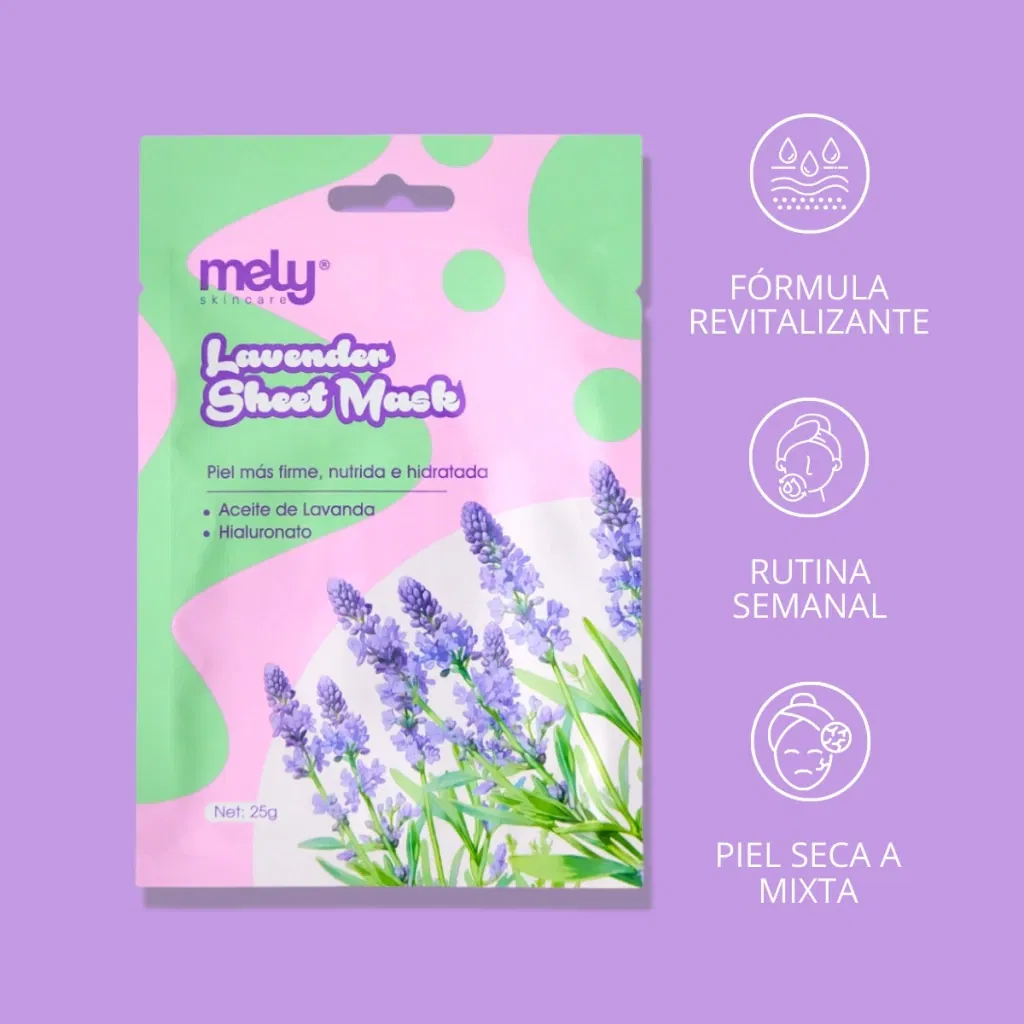 La mascarilla facial Lavender Sweet Mask de Mely Beauty está formulada con extracto de lavanda, reconocida por sus propiedades calmantes, regeneradoras y equilibrantes. Ideal para todo tipo de piel, esta mascarilla de hoja fina se adapta perfectamente al rostro, aportando una hidratación intensa mientras ayuda a aliviar la sensibilidad y el enrojecimiento. Su esencia liviana penetra rápidamente dejando la piel suave, fresca y luminosa. Ideal para incluir en rutinas nocturnas o como tratamiento exprés en momentos de estrés cutáneo.