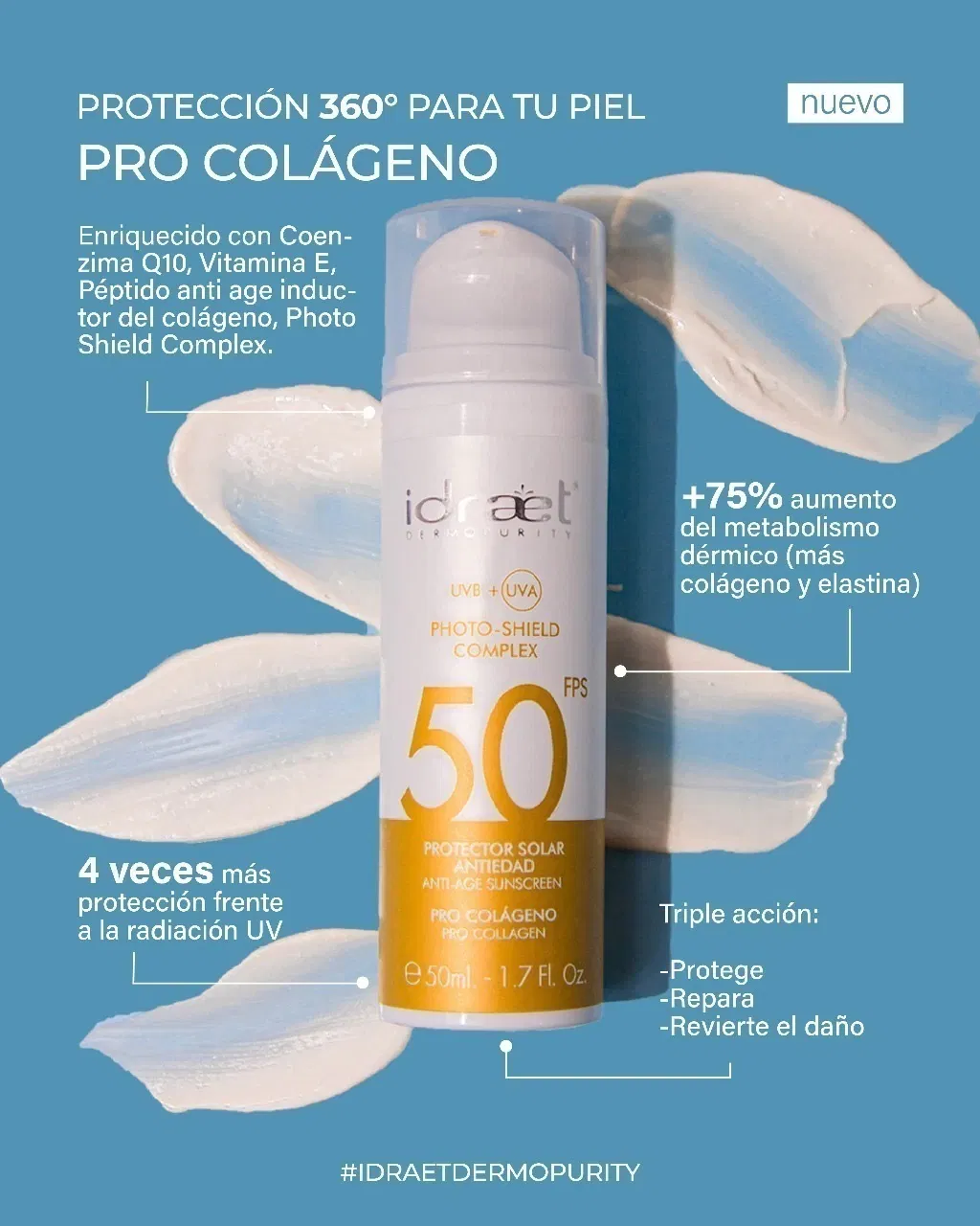 🙌🏼Diseñada para ofrecer una defensa de amplio espectro frente a los rayos UVA, UVB, IR, luz azul y agresiones ambientales.