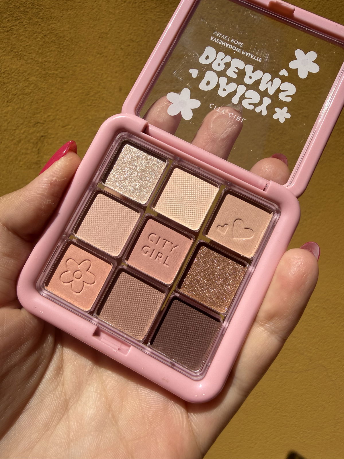 La Daisy Dreams Eyeshadow Palette de City Girl es todo lo que necesitás para crear looks dulces, románticos y versátiles 💕. Con una combinación de tonos rosados, nude y tierra, incluye acabados mates y satinados que permiten desde un maquillaje natural de día hasta un look más intenso y glamoroso de noche.