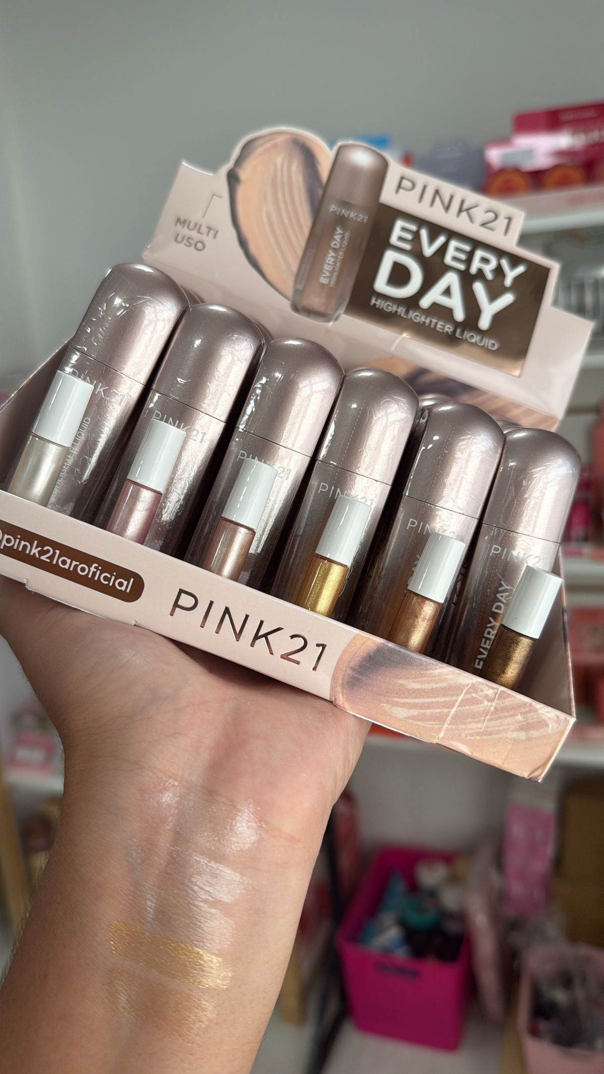 El Iluminador Líquido Every Day Pink 21 aporta un brillo sutil y natural que realza las facciones sin dejar efecto pesado. Su textura liviana se funde perfectamente con la piel, logrando un acabado glow fresco y elegante, ideal para el uso diario.