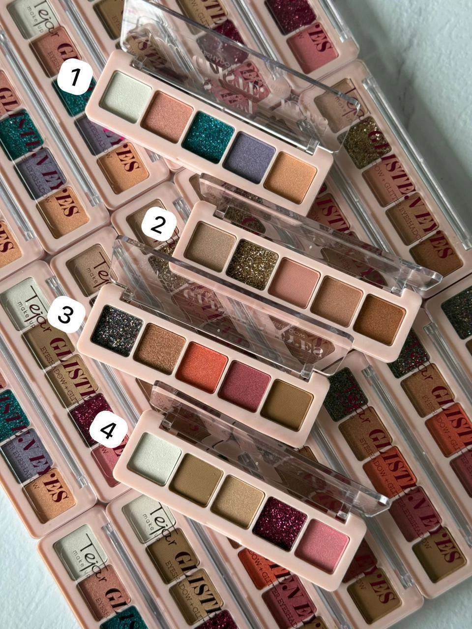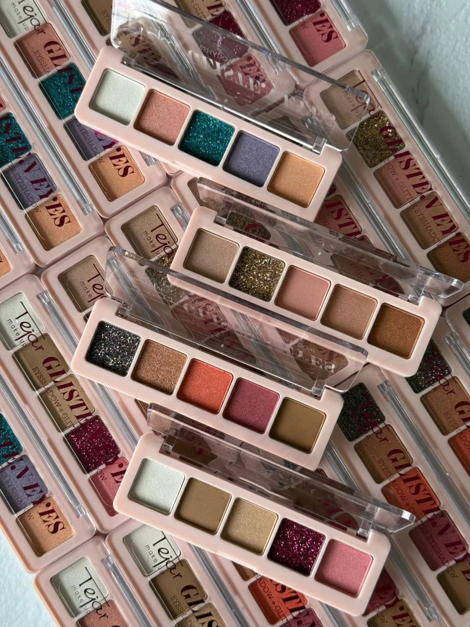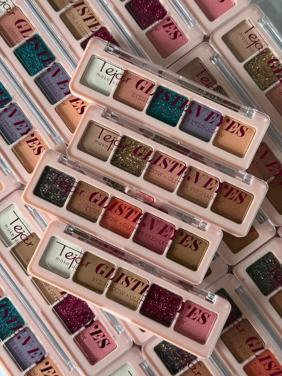 Iluminá tu mirada con la Paleta Glisten Eyes de Tejar Makeup, una combinación perfecta de sombras clásicas y glitter para crear looks versátiles, desde delicados y naturales hasta intensos y glam.