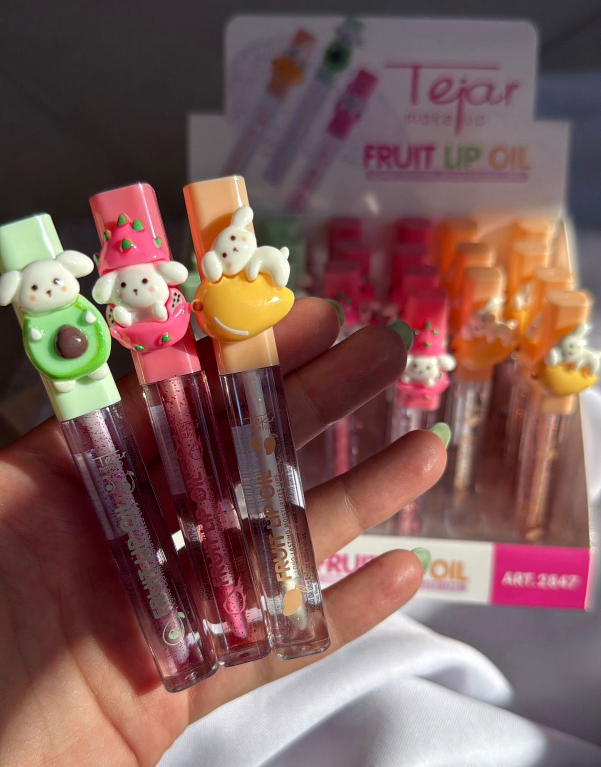 Su textura ligera tipo aceite no es pegajosa y deja un acabado brillante y jugoso, ideal para usar solo o encima del labial. Viene en varios aromas/frutas y con un diseño divertido y llamativo, perfecto para atraer todas las miradas.
